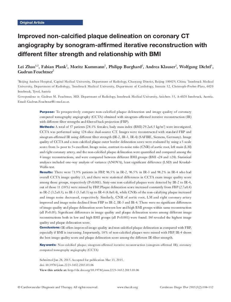 Prognostic factors in coronary computed tomography angiography eingereicht von Drmeduniv. 1 Department of Radiology St. Fabian PLANK Cited by 1005 of Medizinische Universität Innsbruck Innsbruck Read 94 publications Contact Fabian PLANK.
