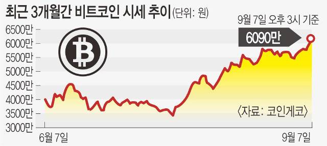 7일 가상자산 거래소 빗썸에 따르면 이날 오전 1비트코인이 6084만원에 거래되고 있다. 24시간 전보다 216 오른 값이다.